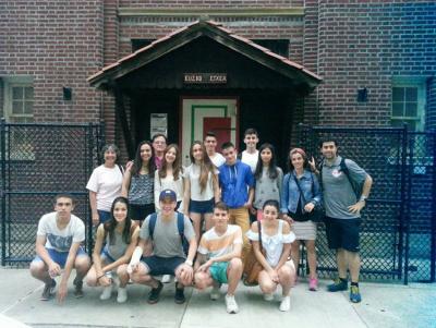 At the end of June, a group of students from the Basque Country visited Euzko Etxea of New York. They were greeted by club members Enrique Arana and Ane Marie, who told them the story of the center, as well as many anecdotes of the Basques of New York. The students were on their way to Boise, where they will spend some weeks this summer learning English and getting to know the rich local Basque heritage.