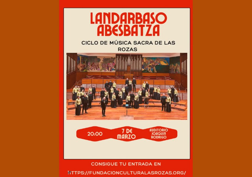 Este sábado 7 de marzo a las 20:00 horas, concierto en el seno del Ciclo de Música Sacra de Las Rozas de Landarbaso Abesbatza de Errenteria, Gipuzkoa, en el Joaquín Rodrigo Auditorium, acompañado por el pianista Pablo Cabezas, en un repertorio especialmente preparado para la ocasión. Entradas aquí.