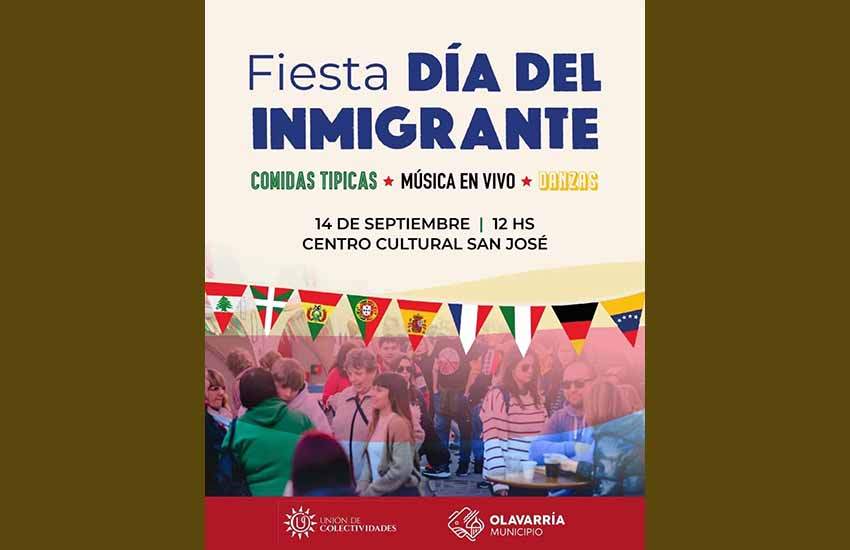 El domingo 14 de septiembre a partir de las 14:30, celebración del Día del Inmigrante en Olavarría en el Centro Cultural San José, con la participación del Centro Vasco Gure Etxe Maitea de la ciudad.