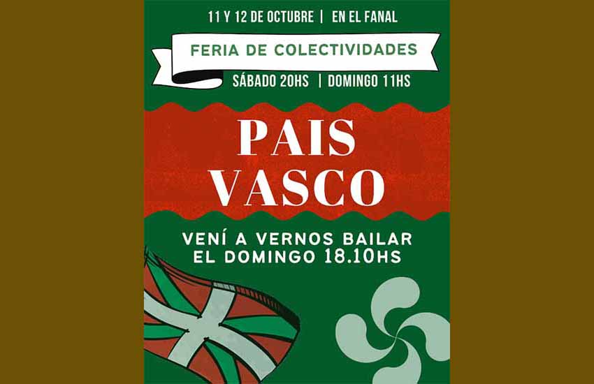 Este sábado y domingo 11 y 12 de octubre, Feria de Colectividades en Tres Arroyos, con la participación del Centro Vasco Hiru Erreka Euskal Etxea.