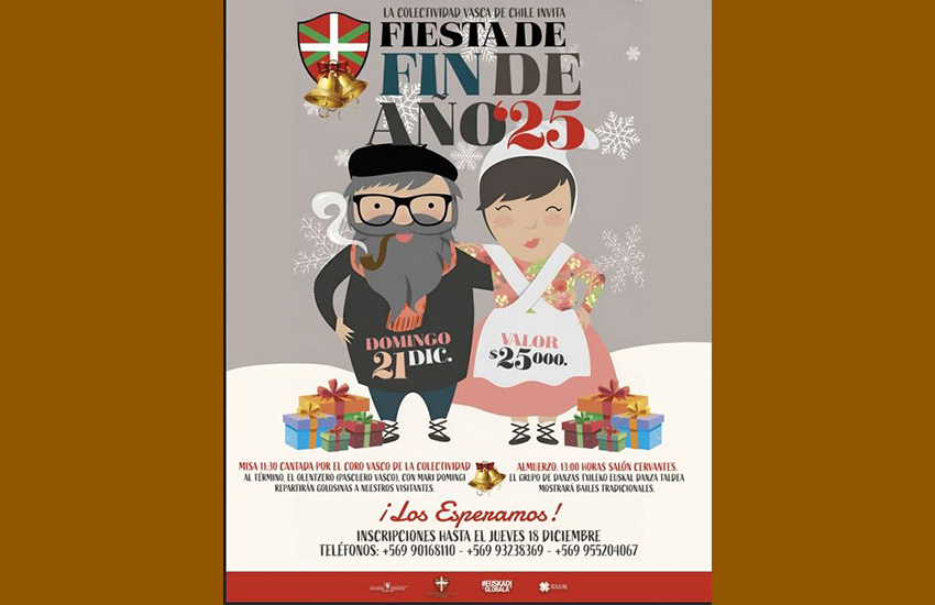 Este domingo 21 de diciembre a partir de las 11:30. Fiesta de Fin de Año organizada por el CV Colectividad Vasca de Chile en el Estadio Español de Santiago.