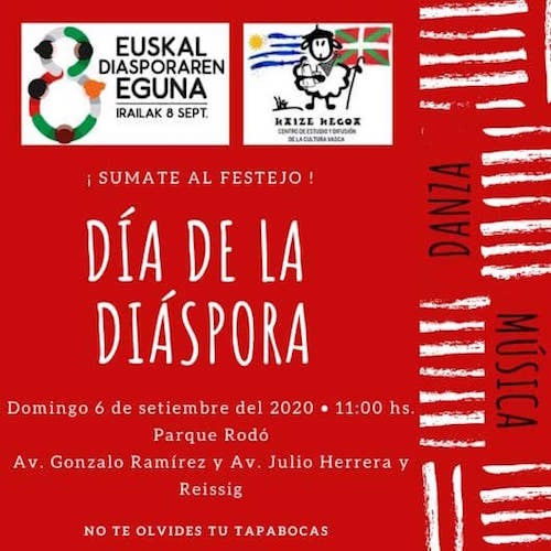 Este domingo 6 de septiembre los socios y amigos de Haize Hegoa Euskal Etxea se encontrarán en el Parque Rodó a celebrar el Día de la Diáspora. La cita es a las 11 de la mañana.