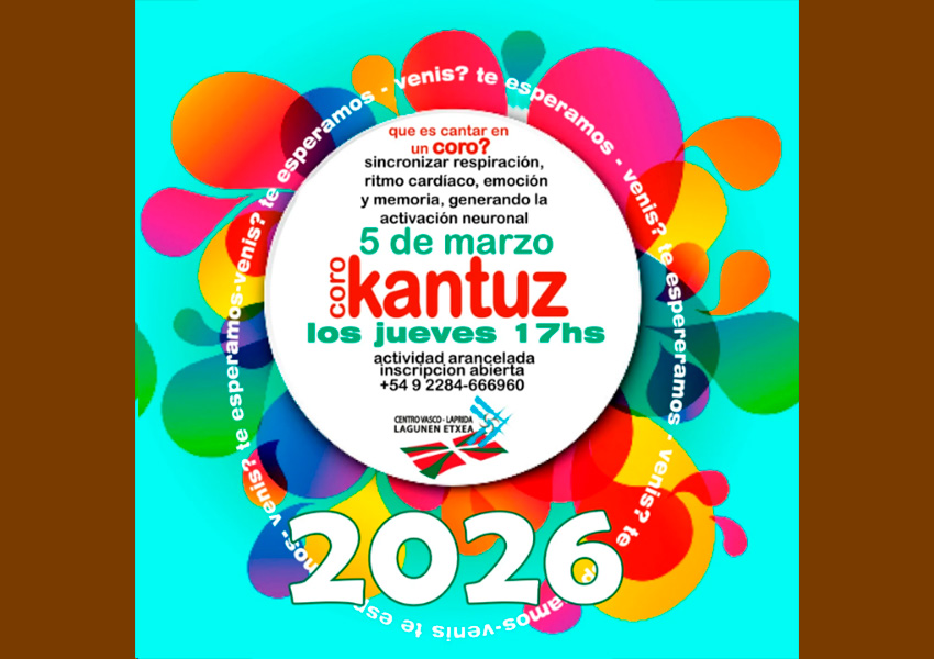 Este jueves 5 de marzo a las 17 horas, inicio de los ensayos semanales del coro Kantuz del Centro Vasco Lagunen Etxea de Laprida.
