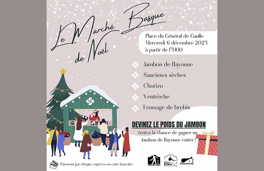 Mercado Vasco de Navidad, con alimentos vascos, caprichos y regalos, en colaboración de las asociaciones vascas de Saint Pierre y Miquelón. En la Plaza del General De Gaulle de Saint Pierre a partir de las 17:00.
