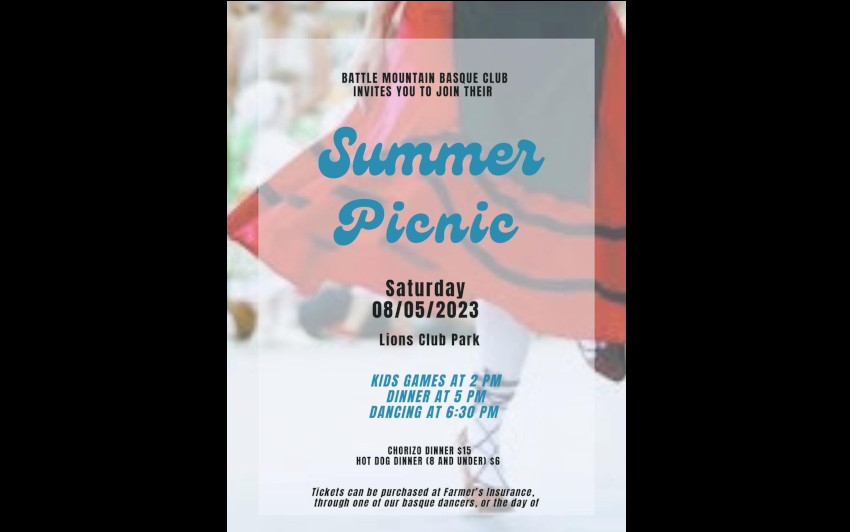 Este sábado 5 de agosto, el Centro Vasco Oberenak de Battle Mountain celebra su picnic de verano anual en Lion´s Park.
