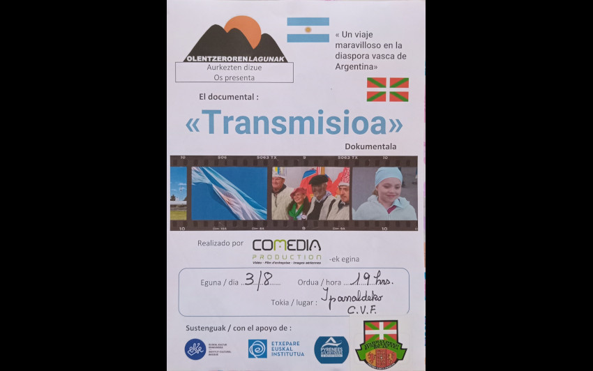 Este jueves 3 de agosto, proyectarán el documental “Transmisioa” de “Olentzeroren Lagunak” grabado en Argentina. La cita es a las 19hs, en Iparraldeko Euskal Etxea.