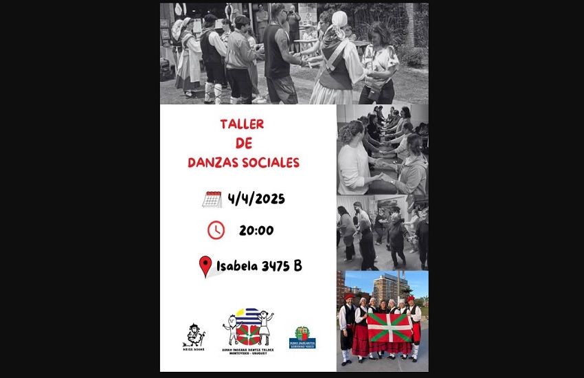 Este viernes 4 de abril, a las 20 horas, taller de danzas sociales en la sede del Centro Haize Hegoa de Montevideo.