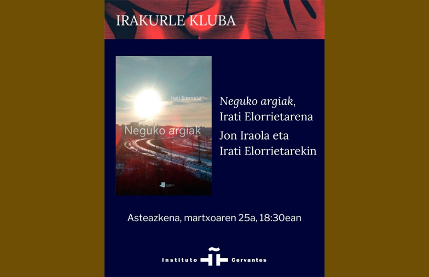 Este miércoles 25 de marzo nueva sesión del Club de Lectura en Euskera, en esta ocasión para comentar la novela 'Neguko argiak' (que ocurre en Berlín) de la escritora Irati Elorrieta, con la propia participando. Coordina como siempre Jon Artola.