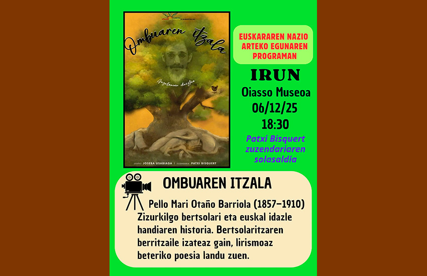 Este sábado 6 de diciembre su director Patxi Bisquert presentará Ombuaren itzala a loas 18:30etan en el Museo Oiasso.
