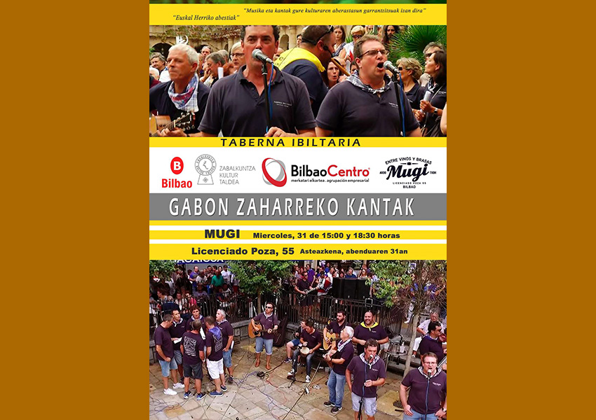 ¿Te gusta cantar repertorio vasco? El miércoles 31 de diciembre, el grupo Taberna Ibiltaria, con experiencia en la Diáspora, y su show participativo —del que disfrutábamos este mismo año en el Jaialdi de Boise— cantará en Bilbao, Licenciado Poza 55, de 15 a 18:30 horas. ¡Anímate y ven!