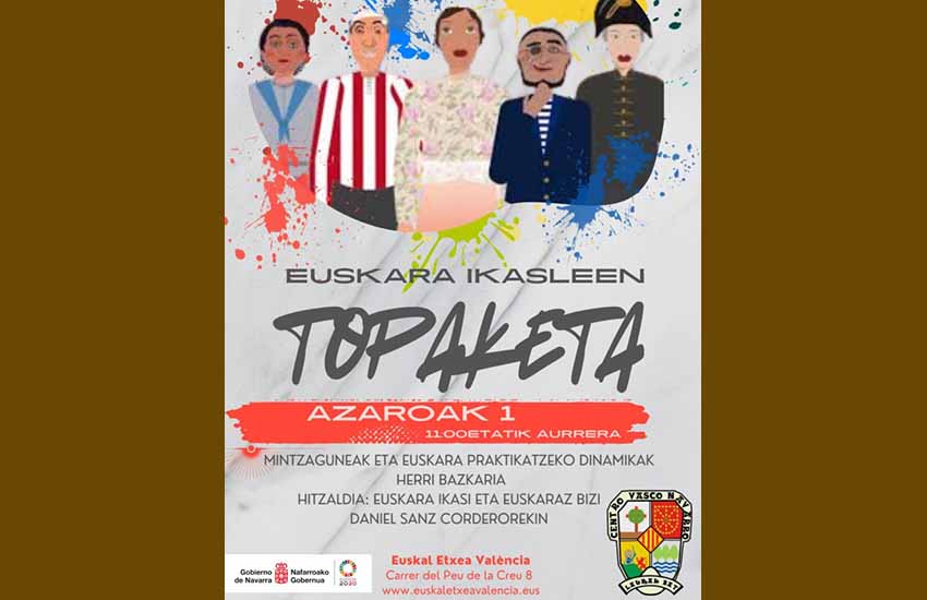 Este sábado 1 de noviembre Euskara Ikasleen Topaketa, encuentro de alumnos de euskera de la Euskal Etxea y la EOI en el Laurak Bat de València. A partir de las 11:00 horas. Programa en el banner.