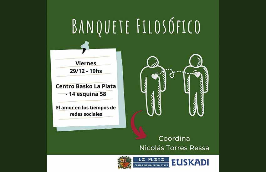Este viernes 29 de diciembre a las 19 horas, último banquete filosófico del año en Euzko Etxea de La Plata: "El amor en los tiempos de las redes sociales".