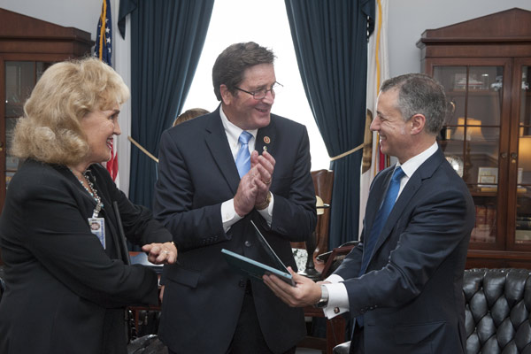 [El lehendakari Iñigo Urkullu junto al congresista John Garamendi y su esposa Patty Garamendi, durante su encuentro en Washington (foto Irekia)]