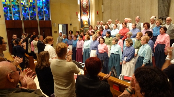 [La misa en Saint Patrick dio paso a un concierto ofrecido en la cercana iglesia de la Sagrada Familia (Holy Family Church) por la coral San Antonio de Iralabarri, dirigida por Maite Zugaza, con asistencia del lehendakari y la delegación vasca. Los coreutas bilbaínos, vestidos con atuendos tradicionales vascos, fueron largamente aplaudidos por el público asistente (foto EuskalKultura.com)]