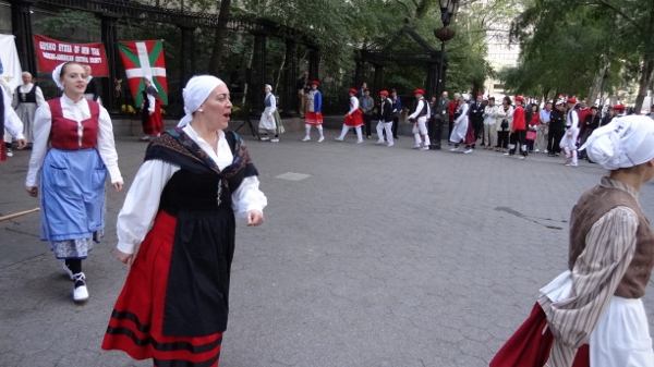 Además de directivos de NABO y Eusko Etxea de Nueva York, también el lehendakari Urkullu y su mujer, así como el resto de la delegación del Gobierno Vasco compareció en el lugar. Urkullu presidiría la exhibición, aplaudiendo desde la primera línea las actuaciones. Como en algún momento anterior, viandantes y paseantes locales preguntaban por aquella muestra, por "aquella música y bailarines", de dónde podrían ser "aquellos atuendos de colores tan vivos", y aquellas danzas tan movidas, "levantando el pie tan arriba". Actuaron el coro de San Antonio de Iralabarri y el grupo dantzari Urki, en lo que a representación de Euskadi se refiere; y los dantzaris del grupo Triskalariak de Salt Lake City, Utah, por la parte vasca americana.