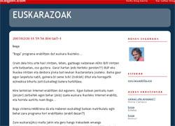 Nadie dijo que aprender un idioma sea fácil, y más si, como muchos vascos de la Diáspora, se intenta aprender desde la distancia en kilómetros. A partir de ahora muchos estudiantes de euskera tienen un nuevo compañero en la red, con el blog 'Euskarazoak'. Este diario electrónico puede suponer un gran apoyo y aliciente para muchos de los vascos de la Diáspora que, como su autor, intentan aprender o bien enseñar el idioma. Su autor lleva utilizando dos años el sistema de autoaprendizaje Boga, el mismo que instala HABE en las euskal etxeas dentro del programa Euskaldunak Munduan para aprender euskera a través de internet.