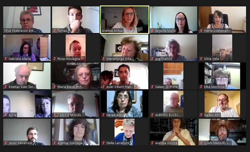 Buenos Aires, Argentina. El pasado sábado, 24 de abril llevó a cabo de manera virtual su Asamblea General Ordinaria la Federación de Entidades Vasco Argentinas (FEVA). En su transcurso los reunidos procedieron a la renovación parcial de autoridades. Por unanimidad, los centros vascos con voz y voto eligieron la siguiente Comisión Directiva, en la que destaca la adición como vicepresidente primero de Asier Iriberri y la incorporación de nuevos centros vascos y representantes a las vocalías.