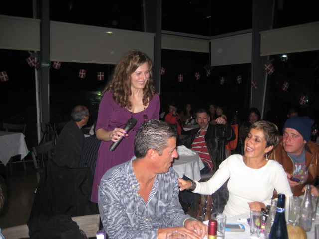 Tras los saludos, la cena comenzó a las 21:00, con un menú elaborado por el chef Alberto Ituarte, y continuó con una animadísima sobremesa, gracias a las canciones interpretadas al acordeón por Xabier Errasti. Micrófono en mano, recorrió las mesas Miren Agirre, animando a los asistentes a cantar. "Tuvimos solistas muy buenos, como los Ormaechea, Julen Ruiz de Azua, y otros no tanto, pero eso sí, todos cantaron con muchas ganas", asegura Jaione Arrieta. Tras los cánticos comenzó la música de baile y la mayoría de los participantes se animó a demostrar su estilo en la improvisada pista hasta la madrugada.
