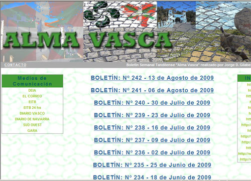 Tandil, Argentina. Se trata de una labor semanal de lectura y selección de noticias, "para luego distribuirla, de manera desinteresada, entre un grupo de distinguidos amigos, que en la actualidad suma ya 610 personas distribuidas por todo el mundo, comenzando desde el propio Tandil y otros lugares de Argentina y la Diáspora, hasta la propia Euskal Herria", señala Jorge D. Gilabert.
