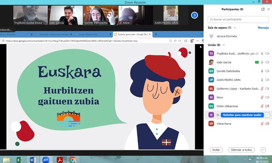 Destacamos algunas propuestas desarrolladas en diferentes puntos de nuestra geografía diaspórica: como el completo programa de toda una jornada que llevaron a cabo euskaldunes y estudiantes de euskera de la mediterránea València (existe también otra euskal etxea en Valencia-Naguanagua, Venezuela). Desde la mañana hubo mucho color y ganas, con juegos, charlas, una comida de hermandad y un original mintzodromo, por Zoom, que unió a estudiantes de euskera locales con otros/as de Estados Unidos. En la Euskal Etxea de Lima, Bittor López impartió una clase magistral de euskera; además de hablar sobre la lengua, el socio del Centro se refirió a la presencia de la lengua vasca en Lima. Tras la conferencia, hubo cena, cantos y partidas de mus.