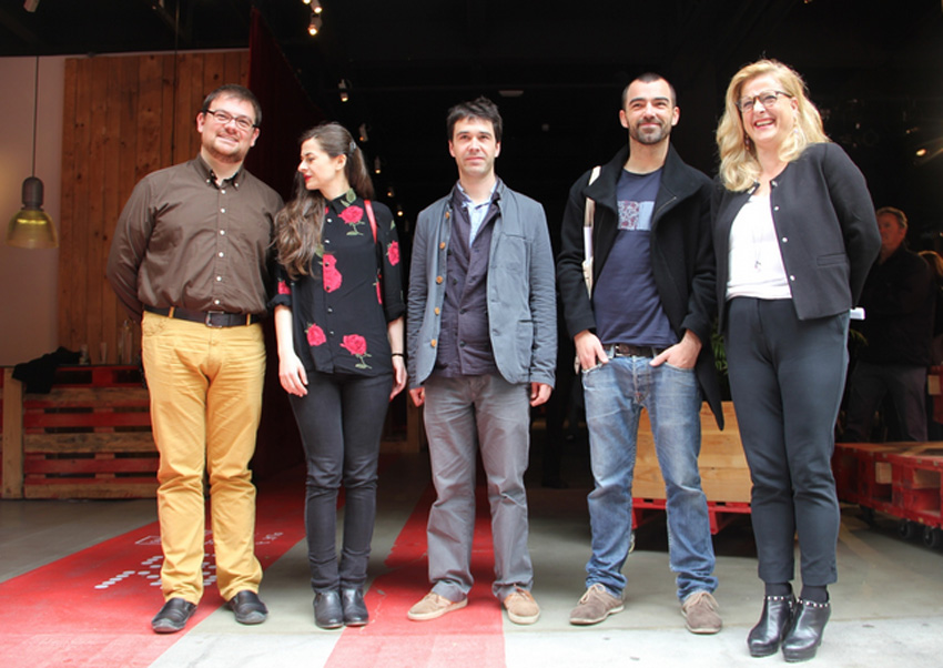 Xabi Paya (DSS2016), Ainara LeGardon, Jaime de los Ríos, Eneko Gil y Aizpea Goenaga (Etxepare), en la presentación (foto Etxepare)
