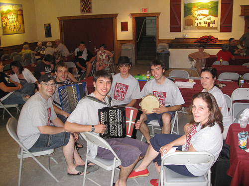 Junto a ellos, como aides o ayudantes, los californianos Jaime [léase 'Ieimi'] Brown, de Los Banos; Christian Jaureguy, de Chino; Anne Marie Chiramberro, de San Francisco; Mattin Larrea, de Donostia; Joseph Esnoz, de Bakersfield; más otros dos vascos europeos y además trikitilaris, a cargo de la música en vivo: Ander e Imanol Zabaleta.