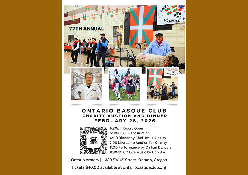 Otsailaren 28an, larunbata, 77. Urteroko Euskal Ongizate Enkante eta Afaria egingo dute Oregoneko Ontarion, bertako euskal komunitatea eta Ontario Basque Club Euskal Etxea antolatzaile, etekinak bertako elkartasun helburuen eta beharra duen jendearen alde.