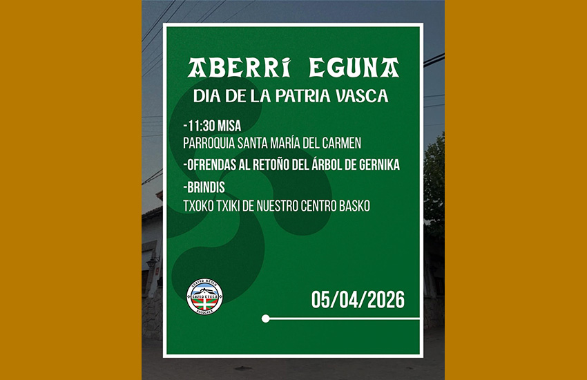 Apirilaren 5ean, igandea, Aberri Eguna ospatuko du Necocheako Euzko Etxeak.