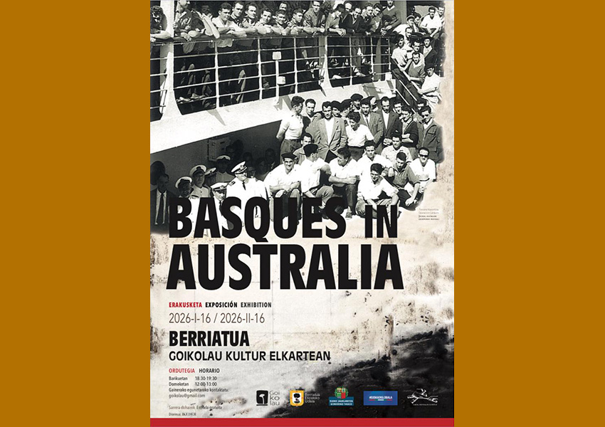 Urtarrilaren 16an, ostirala, Australiako euskaldunei buruzko "Basques in Australia" erakusketa zabalduko dute Berriatuako Goikolau Kultur Elkartean.