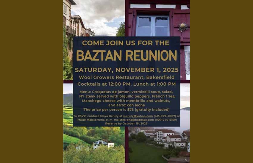 Urriaren 18a, azken eguna izena emateko Azaroaren 1ean Bakersfieldeko Wool Growers euskal ostatuan egingo den Baztandarren Bilkuran.