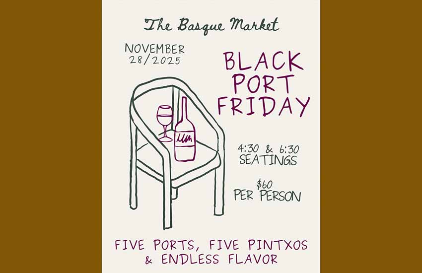 Gaur ostirala, azaroaren 28an, "Black Port Friday" Boiseko The Basque Marketen, hiri erdiguneko Basque Block-en. Bost porto eta beste hainbeste pintxoren uztarketa.