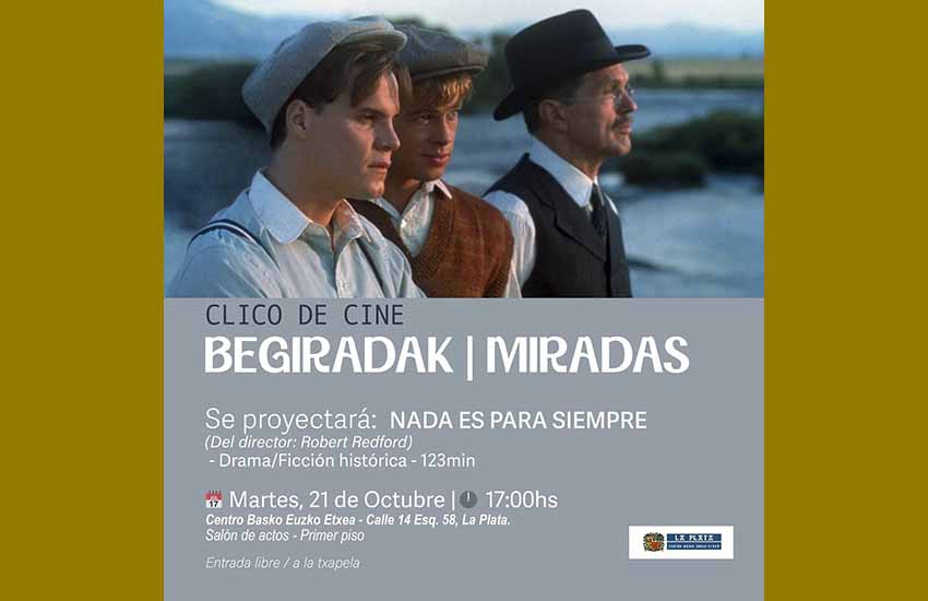Urriaren 21ean, asteartea, 17:00etan, 'Begiradak' Zinema Zikloko izenburu berria La Platako Euzko Etxean: Robert Redford-ek zuzendutako 'Nada es para siempre'.