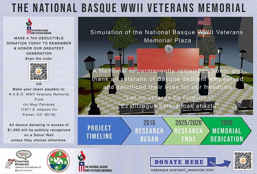 Otsailaren 14an, larunbata, Bigarren Mundu Gerrako Euskal Beteranoen proiektu eta kokapena aurkeztuko dute Pedro J. Oiarzabal historialariak (Sancho de Beurko Elkartea) eta NABOk South San Frantziskoko Gure Euskal Etxean, asteburu osoko jai programari hasiera emanez.