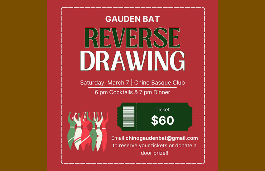 Martxoaren 7an, larunbata, Chinoko Euskal Etxeko Gauden Bat Dantzari Taldeak bere urteroko "Reverse Drawing" (atzerako zozketa) antolatu du, taldearen aurrekontuan laguntzearren.
