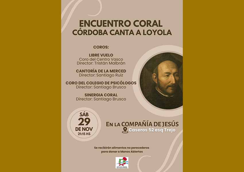 Azaroaren 29an, larunbata, 21:45etatik aurrera, 'Córdoba Canta a Loyola' (Córdoba Loiolari kantari), Córdobako Gure Txokoa Euskal Etxearen eskutik, Jesusen Lagundian (Caseros 52, esquina Trejo).