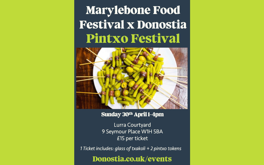Igande honetan, apirilaren 30ean, Donostiako Txakolinaren eta Euskal Pintxoaren jaia antolatu dute, Marylebone Food Festivalekin elkarlanean. Eguerdiko 13etatik 16etara, Lurra jatetxeko terrazan.