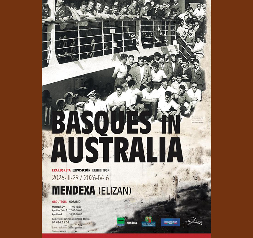 Martxoaren 29an,igandea, euskal australiarrei buruzko Basques in Australia erakusketa zabalduko dute Mendexako herriko elizan. Sarrera doan.