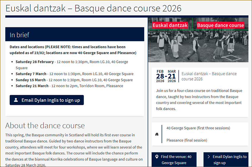 Euskal dantza ikastaroa, Edinburgoko Unibertsitateko Europar Hizkuntza eta Kultura Departamentuaren eskutik.