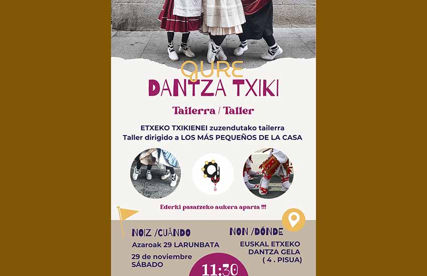 Madrilgo Euskal Etxeko dantza taldekoen mezua: Garai berezi-berezia gerturatzen ari da, eta tradizioz betetako modu dibertigarri batean prestatu nahi dugu. Urtero bezala, abenduan Olentzero eta Mari Domingi gure Euskal Etxera etorriko dira bisitan. Horregatik, Dantza taldeak, guraso eta umeentzako tailer batean parte hartzera gonbidatu nahi zaituzte, non dantza erraz eta alai batzuk ikasiko ditugun; gero, Olentzero eta Mari Domingi, merezi duten ilusio guztiarekin hartzeko erabiliko ditugun dantzak.