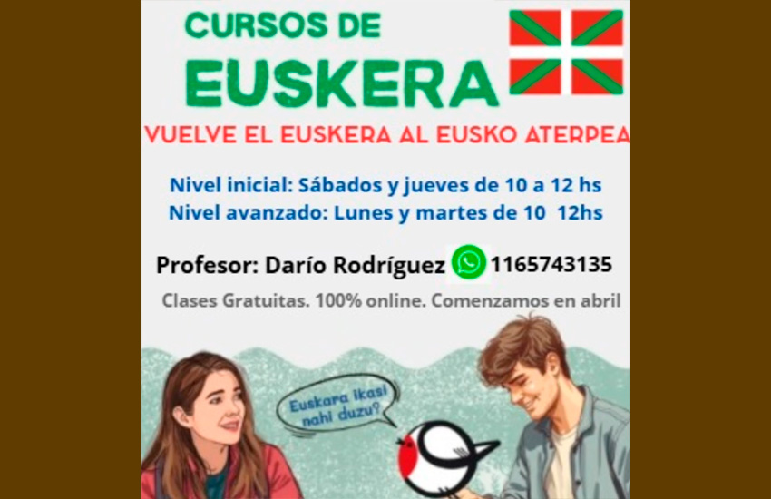 Ikasturte berriarekin hemen datoz berriz ere euskara eskolak General Rodriguezko Eusko Aterpeara, doan eta erabat online, Darío Rodríguez irakasle.