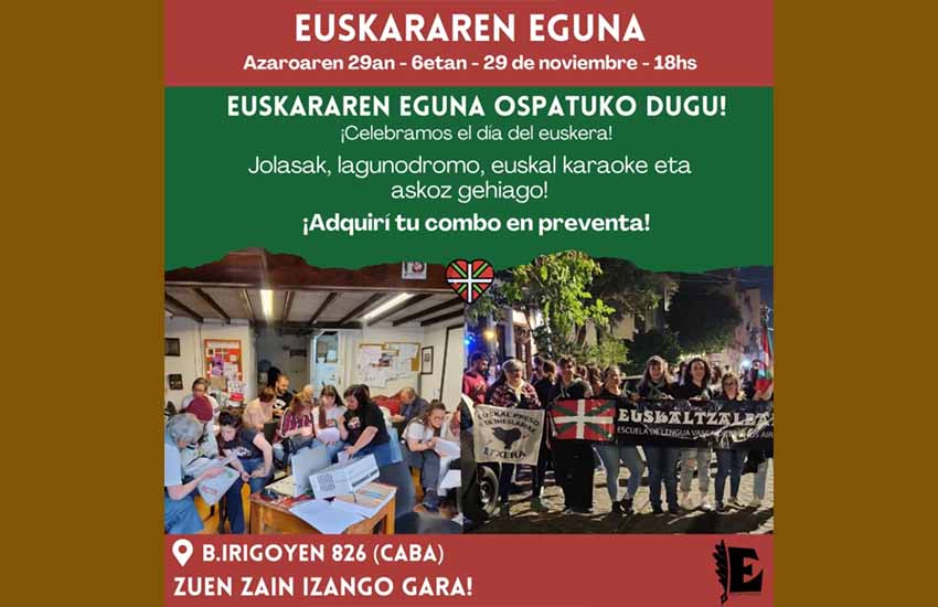 Azaroaren 29an, 18etatik aurrera ospatuko du Buenos Airesko Euskaltzaleak euskaltegiak Euskararen Nazioarteko Eguna, kalean, bere egoitzaren aurrean, besteak beste jolasak, mintzodromoa, karaokea eta gauza gehiago biltzen dituen jai-programa batekin, taberna zabalik eta jateko eta edateko hautuak barne, euskal musika eta egundoko giro euskaltzaleak lagun.