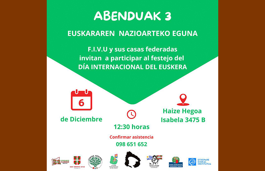 Euskararen Eguna ospatuko dute abenduaren 6an, larunbata, FIVU federazioak eta bere EE bazkideek, aurten Haize Hegoaren egoitzan, 12:30etatik aurrera.