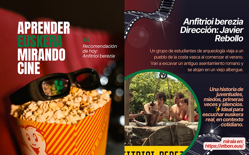 "Gaur Anfitrioi berezia filma gomendatzen dizugu, egokia oso euskara eguneroko egoeretan entzuteko, udako istorio intimo bat kontatzen duena euskal kostaldean girotua".