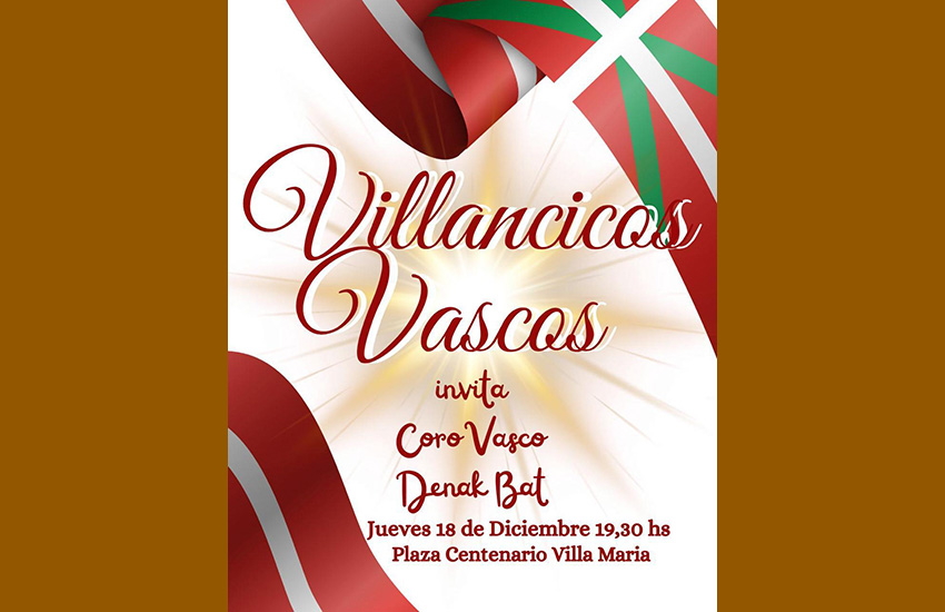 Abenduaren 18an, osteguna, Villa Maríako Euzko Etxeko Denak Bat Abesbatzak euskal Eguberri kanta saioa eskainiko du hiriko Mendeurrenaren Plazan, 19:30etatik aurrera.