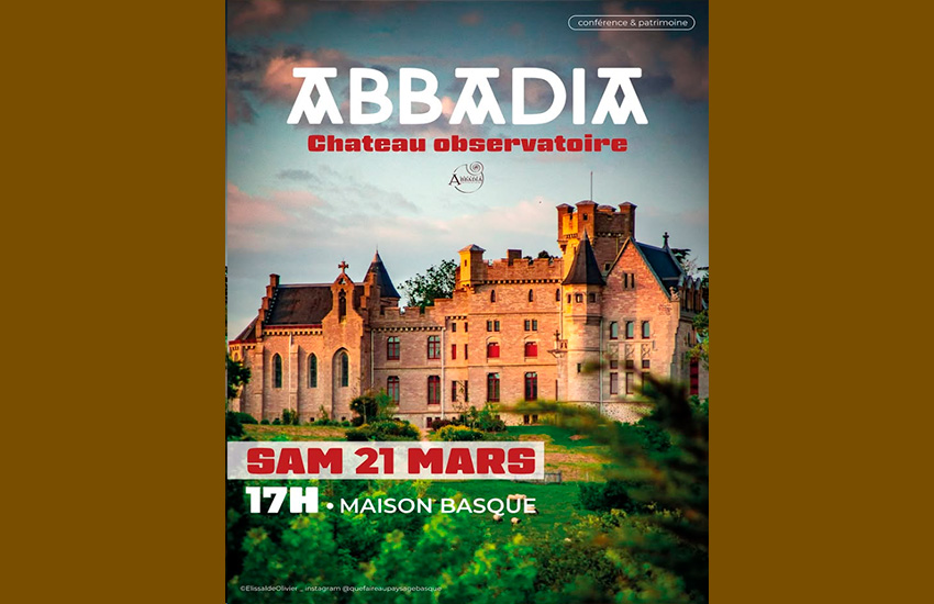 Martxoaren 21ean, 17etan, hitzaldia emango dute Bordaleko Euskal Etxean Frederic Soulu eta Aude Claret-ek hitzaldia Abbadiako Gazteluaz Euskal Etxean, lehenengo partea.
