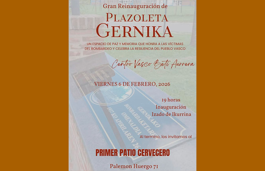 Chivilcoyko Beti Aurrera Euskal Etxearen ondoan kokatua dagoen plazaska solemnidadez eta Gernikako bondardaketa gogoratuz eta euskaldunen gorazarre inauguratuko dute, ondoren Garagardo Patio batera gonbidatuz.