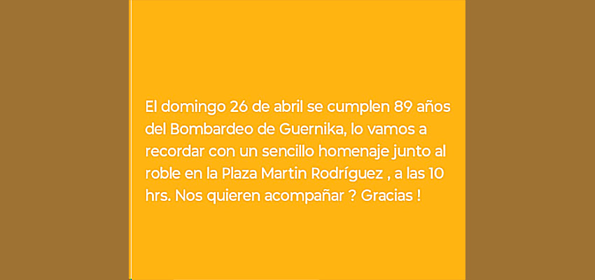 Duela bi aste Aberri Eguneko bazkaria egin ondoren, gaur, Gernikako Bonbardaketaren 89 urteurrena oroituko du 10etan General Rodriguez-ko Eusko Aterpea Euskal Etxeak bertako Rodriguez Plazako Haritzaren ondoan.