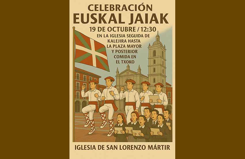 Valladolideko Gure Txoko Euskal Etxeak bere Euskal Jaien 2025eko ediziora gonbidatzen du, programak meza, txistulari eta dantzariak, herri bazkaria-eta dituela.