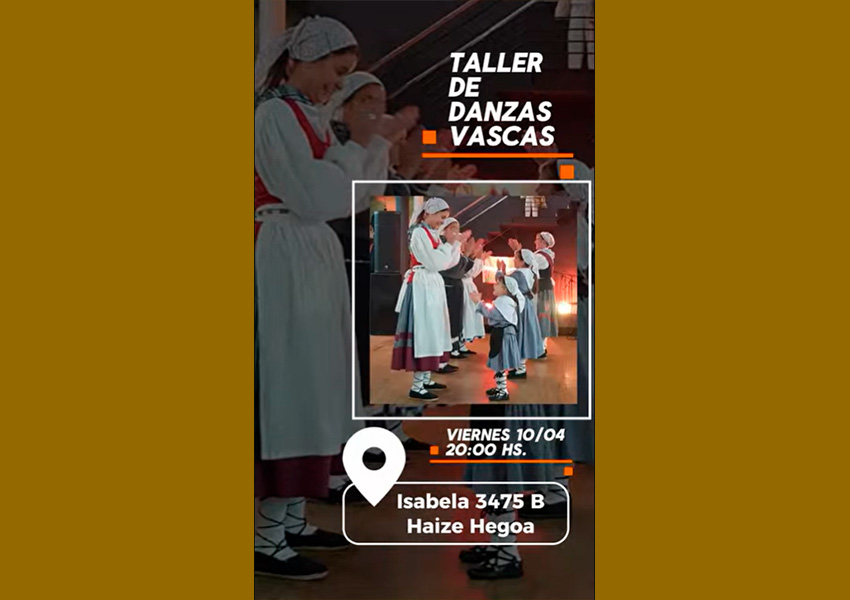 Haize Hegoa Euskal Etxeak bere euskal dantza tailerrean parte hartzeko gonbitea egin du, elkartearen egoitzan, apirilaren 10ean 20:00etan.