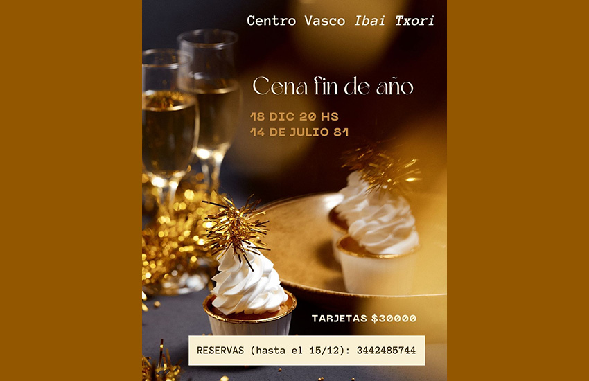 Abenduaren 18an, osteguna, Concepción del Uruguay-ko Ibai Txori Euskal Etxeko kideek 2025ari azken agurra emateko afarira deitu dute, elkartearen egoitzan, 14 de julio 81 helbidean, 20:00etan.